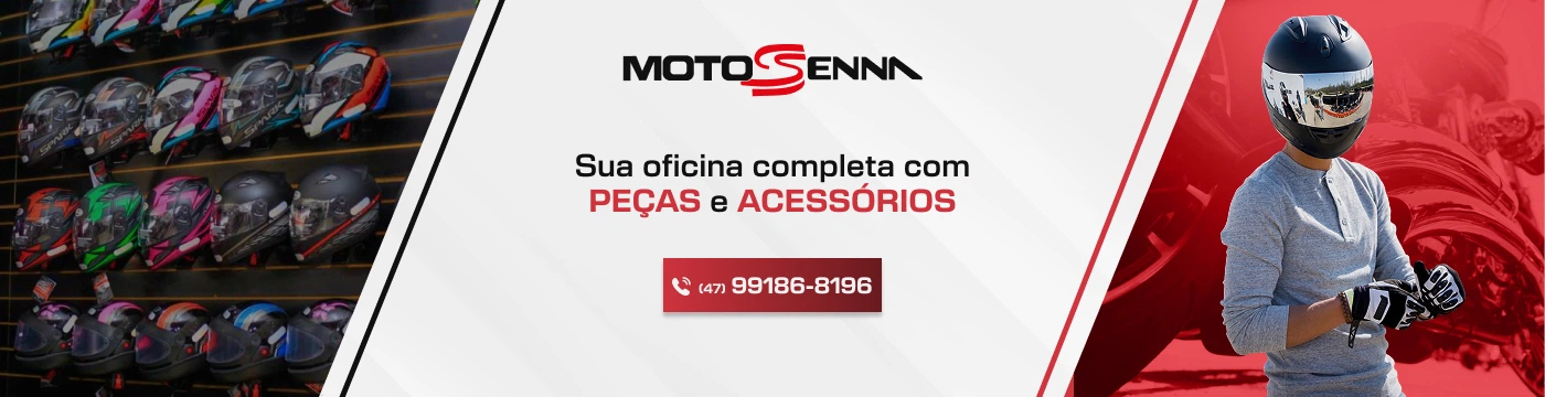 Aqui na Moto Senna, oferecemos as melhores marcas em acessórios, peças e equipamentos para sua moto, garantindo mais segurança, conforto e estilo para sua pilotagem.